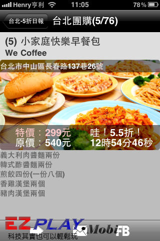 挑選喜歡吃美食項目,會顯示滿清楚團購詳細資料,要買時要多注意可預購時間喔!