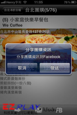 下面個「FB」也可以把分享團購資訊,分享到你Facebook,給親朋好友分享好康資訊。