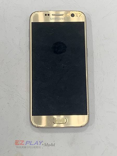 客人帶著三星S7 來到現場說明,手機之前回國的時候在機場大包小包的行李,還要拖著行李箱,要確認接自己的人來了沒時,拿出手機就不小心掉到地上摔機了,但充過去撿起手機沒有黑屏不顯示,當下是沒有事的可以正常使用,可是之後發生了奇怪的事情,像是電池變難充,然後電量%會亂跳之類的,昨天晚上就不開機再也開不起來了,好的!看來這個問題也要先打開來檢測看看了。