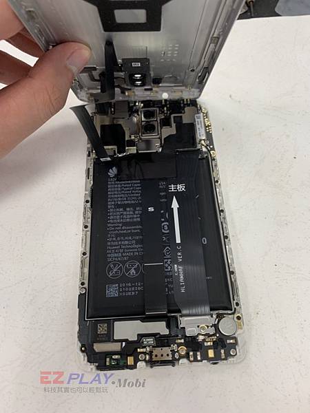 首先我們先打開背蓋,掀開的時候要小心,因為上面有一條開機排線,好奸詐的陷阱。